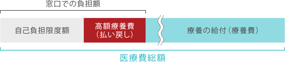 | 世帯合算 | 同じ世帯で1ヵ月(歴月:1日から末日まで)の自己負担額の合計が一定金額を超えた場合、超えた分が申請により後で払い戻される制度 |