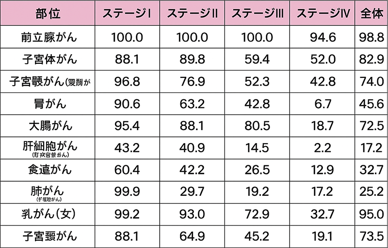 主要な癌の5年生存率