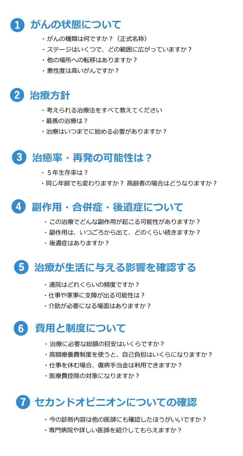 - 診断や治療方針について納得いくまで話し合う